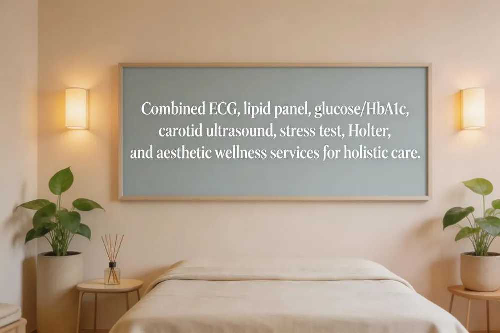 At Jana HealthCare in Brooklyn, a heart‑screening package blends cutting‑edge cardiology with personalized wellness and aesthetic services. In one convenient visit you receive a resting ECG, blood‑pressure check, a full lipid panel (including LDL, HDL and triglycerides), a fasting glucose/HbA1c test, and a carotid‑artery ultrasound to spot early arterial disease. A portable cardiac stress test and a 24‑hour Holter monitor add rhythm surveillance, while a board‑certified cardiologist reviews the results and crafts a prevention‑focused plan that may include lifestyle counseling, medication, or referral for further imaging.