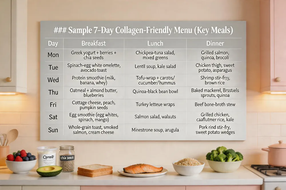 Sample 7‑Day Collagen‑Friendly Menu (Key Meals)