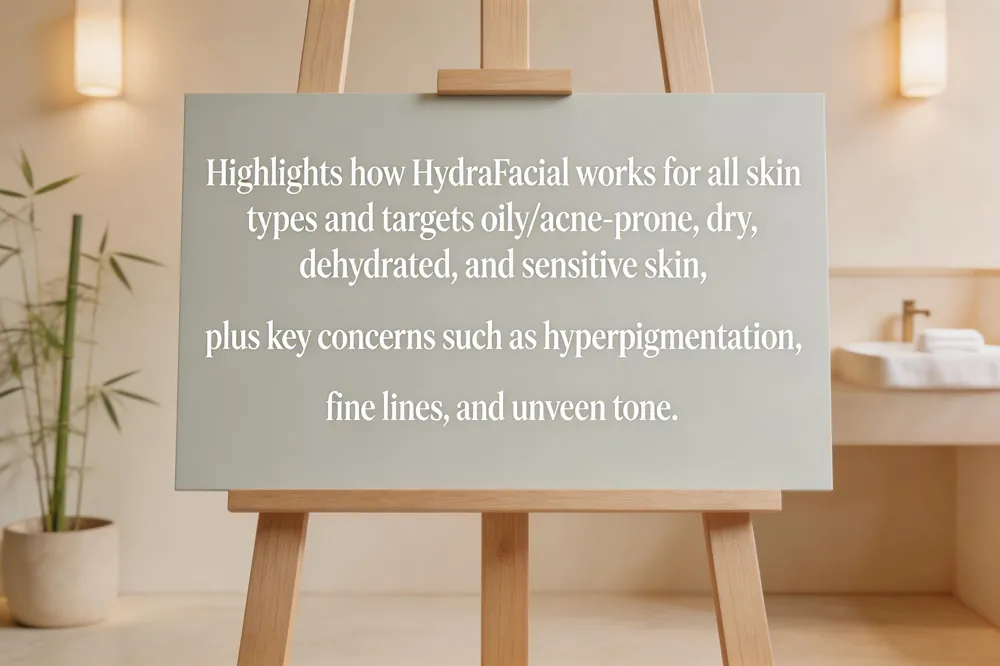 Which skin type is best for HydraFacial? Every skin type can enjoy its benefits, but oily, acne‑prone, and dull complexions see the most noticeable results.