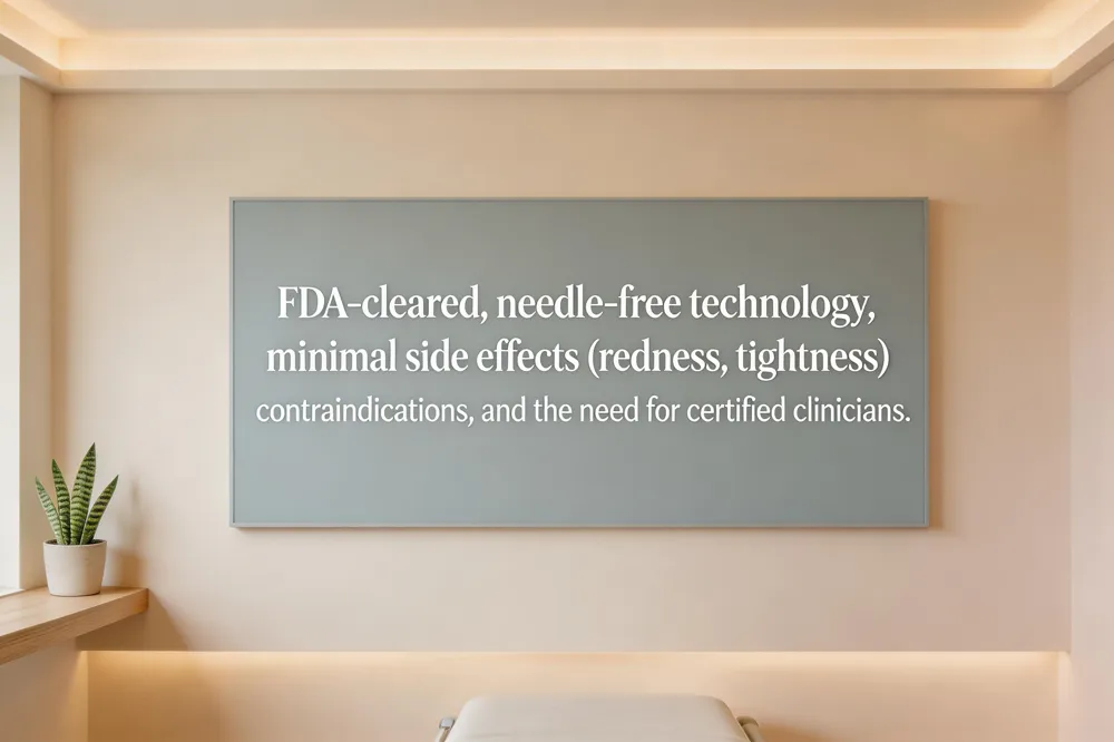 HydraFacial is FDA‑cleared and uses medical‑grade serums (hyaluronic acid, peptides, antioxidants) delivered through Vortex‑Fusion, a needle‑free, vacuum‑based wand. Because there are no needles or harsh scrubbing, the treatment is painless; most patients describe it as a light, cooling massage with a mild tingling sensation. Typical side effects are minimal—temporary redness, slight tightness or mild irritation that fades within a few hours, and rare allergic reactions if you’re sensitive to any serum ingredient. Contraindications include active rashes, severe acne, recent retinoid use, or recent cosmetic procedures; discuss these with your provider. Qualified clinicians—dermatologists, licensed aestheticians, or medical‑grade aesthetic physicians—must be certified in the Hydrafacial MD system and follow strict sanitation protocols. They also perform a personalized skin analysis and select the appropriate booster serums to match your unique concerns. This professional oversight ensures safe, consistent results for every skin type.