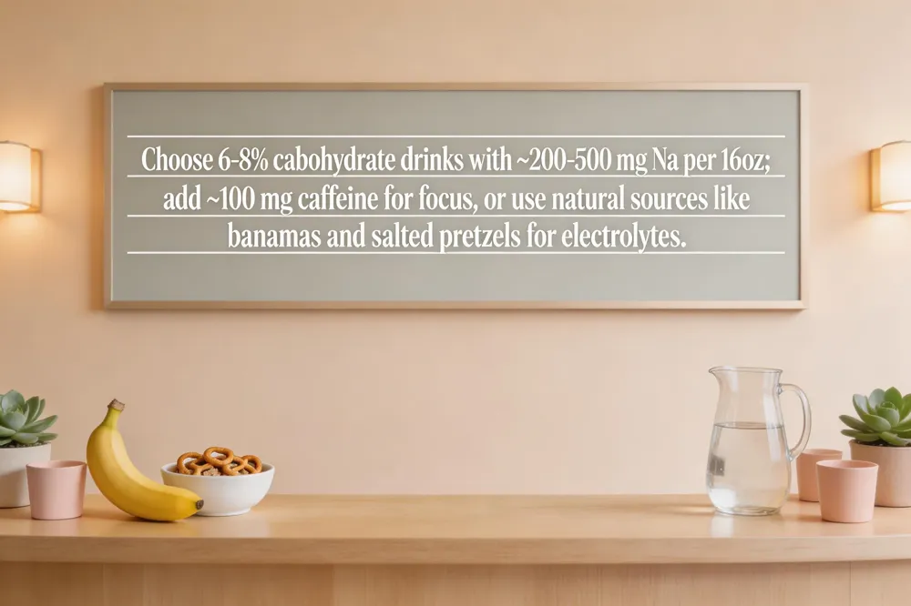Begin each day with a sodium‑rich drink 2–3 hours before training—about 5 ml per kilogram of body weight, roughly 16–20 oz of a sports drink or electrolyte‑infused water. This pre‑hydration fills fluid reservoirs and supports nerve‑muscle signaling. During activity, sip 6–12 oz every 20 minutes for adults, adjusting upward in heat or when sweat loss exceeds 1 L h⁻¹; choose isotonic drinks that supply ~200 mg sodium per 16 oz and 6–8 % carbs to sustain energy and fluid absorption. After the session, replace each pound lost with 24 oz of water or a hypotonic beverage, adding a protein‑carbohydrate source such as chocolate milk for recovery. Personalize the plan by measuring weight change, checking urine color, and using a smart bottle or sweat‑rate test. Consult a sports dietitian or athletic trainer to fine‑tune electrolyte ratios, especially for high‑intensity or hot‑weather workouts.