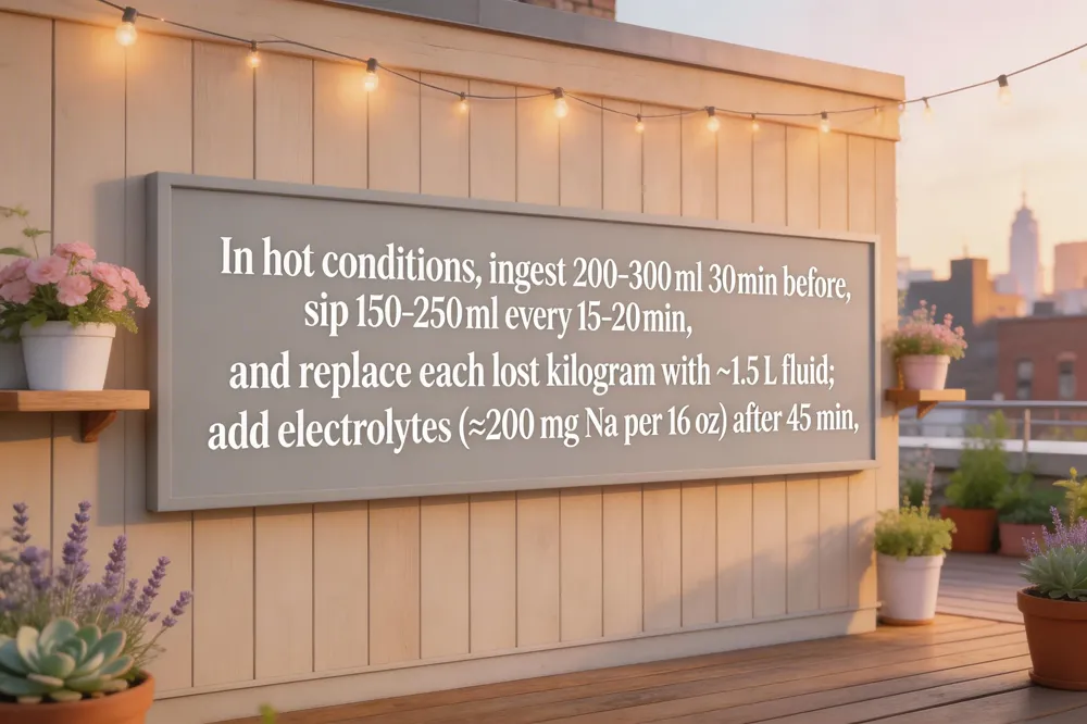 Hydration for running in hot weather Heat increases sweat loss, reducing plasma volume. Drink 200‑300 ml of water or an electrolyte drink 30 min before a run, sip 150‑250 ml every 15‑20 min, and replace each kilogram lost with ~1.5 L of fluid after. Keep urine a pale yellow.