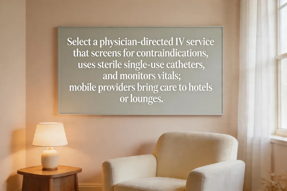 Before any infusion, a qualified clinician conducts a brief medical screening to identify contraindications such as uncontrolled hypertension, severe heart or kidney disease, active infection, or known allergies to IV components. During the session, sterile technique—single‑use catheters, antiseptic skin prep, and aseptic handling—protects against infection, while trained nurses monitor vital signs and watch for signs of infiltration or allergic reaction. Mobile IV services bring this care to hotel rooms or airport lounges, offering convenience for tight travel schedules; typical costs range from $150‑$250 for basic hydration to $200‑$400 for specialized blends. Jana HealthCare, located in Brooklyn, NY, provides physician‑directed, FDA‑compliant IV therapy with experienced nurses, ensuring safe, personalized treatment for travelers.