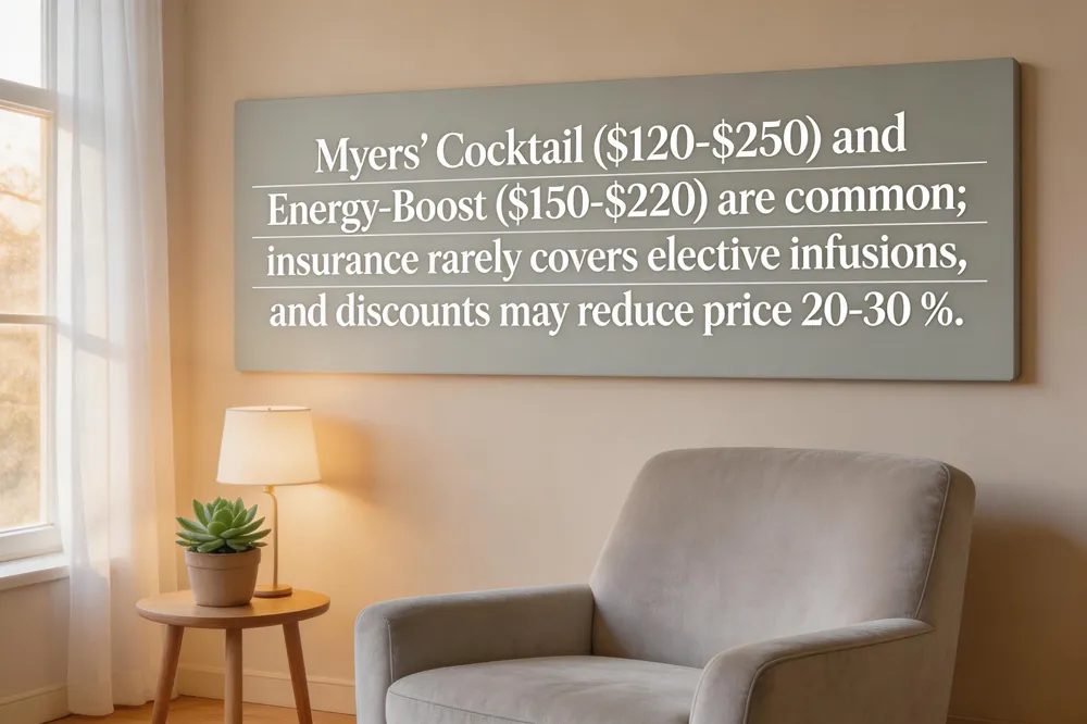 Energy IV drip cost – Typical cost $120‑$250; membership or package discounts can lower price 20‑30 %.