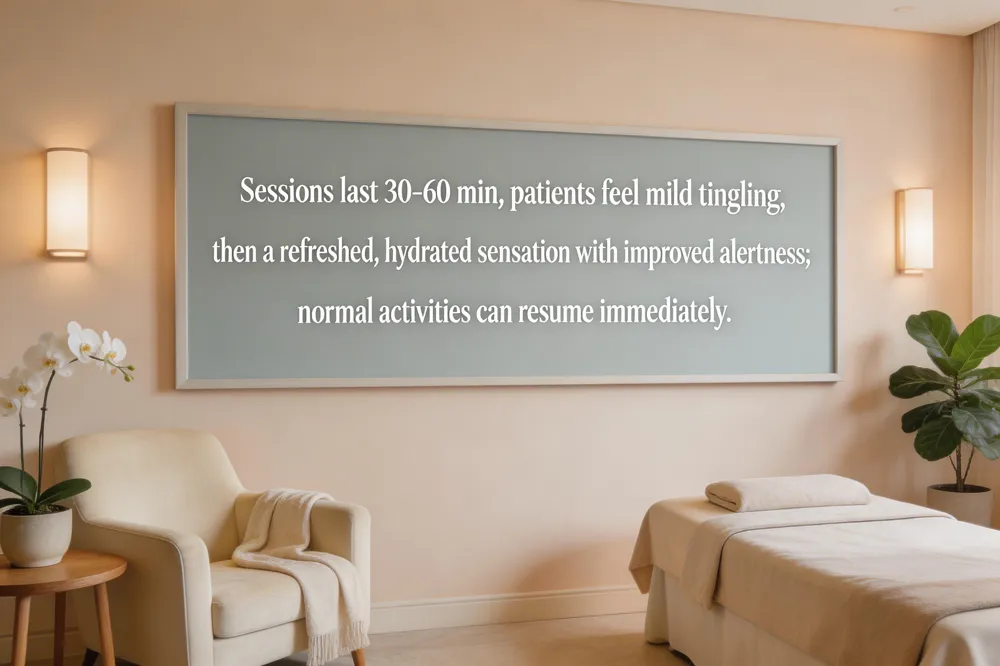 A typical session lasts 30‑60 minutes in a calm, reclined chair; a sterile IV line is placed, and the drip runs while you relax, read, or listen to music. Most patients feel a mild cooling or tingling in the arm during the infusion, which fades quickly after the line is removed. How do you feel after an IV vitamin infusion? Within minutes you usually notice a light, refreshed sensation, a subtle boost in alertness and mental clarity, and a feeling of hydration spreading through the body. Many report reduced fatigue, improved mood, and a quick lift of energy. IV therapy for energy delivers electrolytes, B‑complex vitamins, vitamin C, and sometimes minerals like taurine or NAD⁺ directly into the bloodstream, achieving near‑100 % bioavailability and a rapid cellular energy lift. Recovery is immediate; you can resume normal activities right after the session, though staying well‑hydrated and avoiding heavy meals for an hour is advisable. A brief follow‑up check of vitals and discussion of any side effects helps personalize the next infusion schedule.