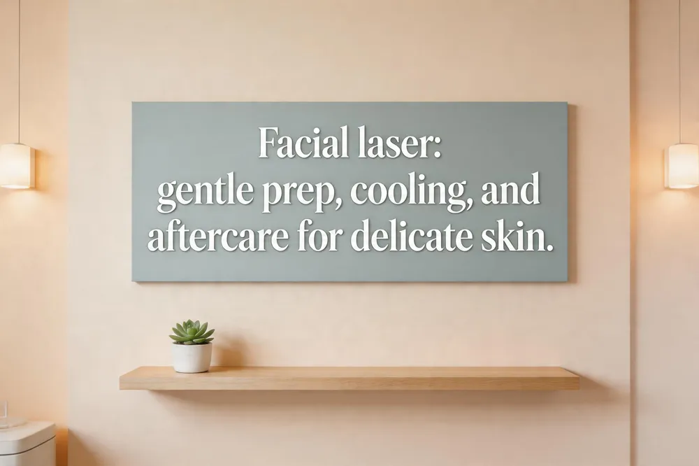 For patients with sensitive facial skin, start with a fragrance‑free, sulfate‑free cleanser the day before the appointment to preserve the skin barrier and avoid alcohol‑based products that can heighten reactivity. Apply a hydrating moisturizer—such as a hyaluronic‑acid serum or aloe‑vera gel—at least 24 hours before the session and again immediately afterward to keep the epidermis supple. During treatment, ask the clinician to use a lower fluence setting combined with built‑in cooling (contact cooling or cryogen spray) or a pre‑treated cooling gel; this reduces heat‑induced erythema while still targeting the hair follicle. After the laser, place a cool compress or ice pack wrapped in a soft cloth on the face for 10‑15 minutes, then follow with a fragrance‑free hypoallergenic moisturizer to lock in moisture. Avoid hot showers, saunas, vigorous exercise, makeup, exfoliants, retinoids, and scented products for 24‑48 hours. Protect the newly treated skin with a broad‑spectrum SPF 30+ sunscreen daily for at least two weeks, reapplying after sweating or washing, and stay out of direct sunlight for a week to prevent hyperpigmentation and further irritation.