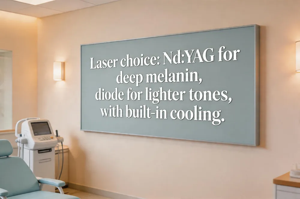When you have sensitive skin, selecting a laser that respects the delicate epidermal barrier is essential. The Nd:YAG (1064 nm) laser is often the top recommendation for very sensitive or darker skin because its longer wavelength penetrates deeper and bypasses surface melanin, reducing the chance of burns and post‑treatment hyperpigmentation. For lighter‑to‑medium tones, diode lasers (800‑810 nm) provide precise follicle targeting and frequently include built‑in cooling devices that keep the skin surface comfortable. Both technologies allow clinicians to lower fluence, shorten pulse duration, and enlarge spot size, tailoring each session to your individual tolerance. Integrated cooling—contact coolers, cryogen spray, or topical cooling gels—protects the epidermis during the pulse and eases any immediate redness or swelling. A qualified dermatologist will also conduct a patch test, advise a sun‑free preparation period, and recommend fragrance‑free moisturizers and SPF 30+ after each treatment. While Hashimoto’s disease is not a direct contraindication, thyroid medication can increase light sensitivity, so a pre‑procedure skin assessment is especially important to minimise irritation.