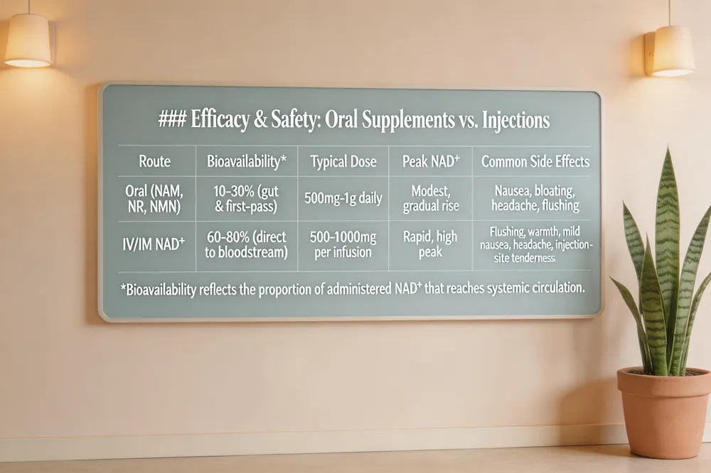 Efficacy and Safety of NAD⁺ Supplements vs. Injections