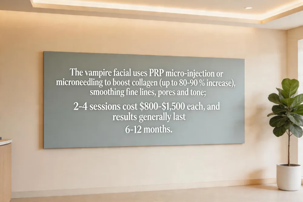 The vampire facial begins with a small blood draw, centrifugation to concentrate platelets, and micro‑injection of autologous PRP into the dermis or via microneedling. Growth factors (PDGF, TGF‑β, VEGF, IGF‑1) stimulate fibroblasts, boosting collagen, elastin, and extracellular‑matrix synthesis. Clinical series of three sessions spaced 2–3 weeks report measurable improvements in texture, pore size, wrinkle depth, firmness and elasticity, with objective tools (VISIA®, Cutometer) confirming higher dermal collagen density. Before treatment, patients often show fine lines, uneven tone, sun‑damage, and mild laxity; after a single session most notice smoother, brighter skin within 4–8 weeks, and collagen can rise 80‑90 % in some studies. Results typically last 6–12 months, prompting maintenance injections. In Brooklyn, a PRP facial costs $800‑$1,500 per session (average $1,000); a full series of 2‑4 treatments totals $2,000‑$6,000 and is usually not covered by insurance. Side‑effects are mild and transient—redness, swelling, pinpoint bruising, or brief tenderness—resolving within days; severe complications are rare when sterile technique is followed.