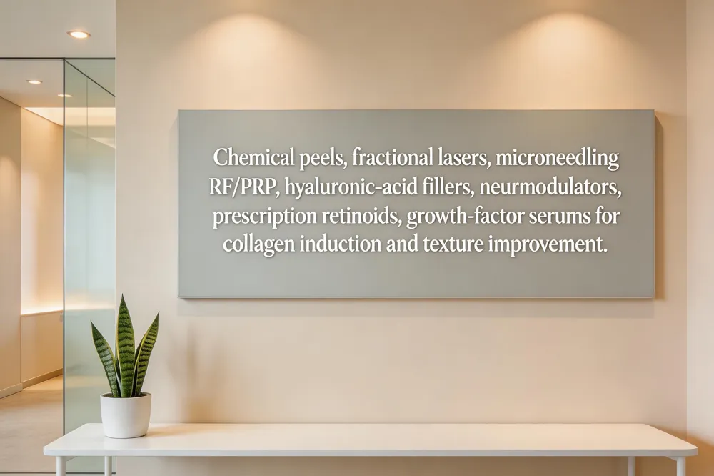 Across the 20s through the 50s, dermatologists combine topical actives with in‑office procedures to keep skin resilient and radiant.