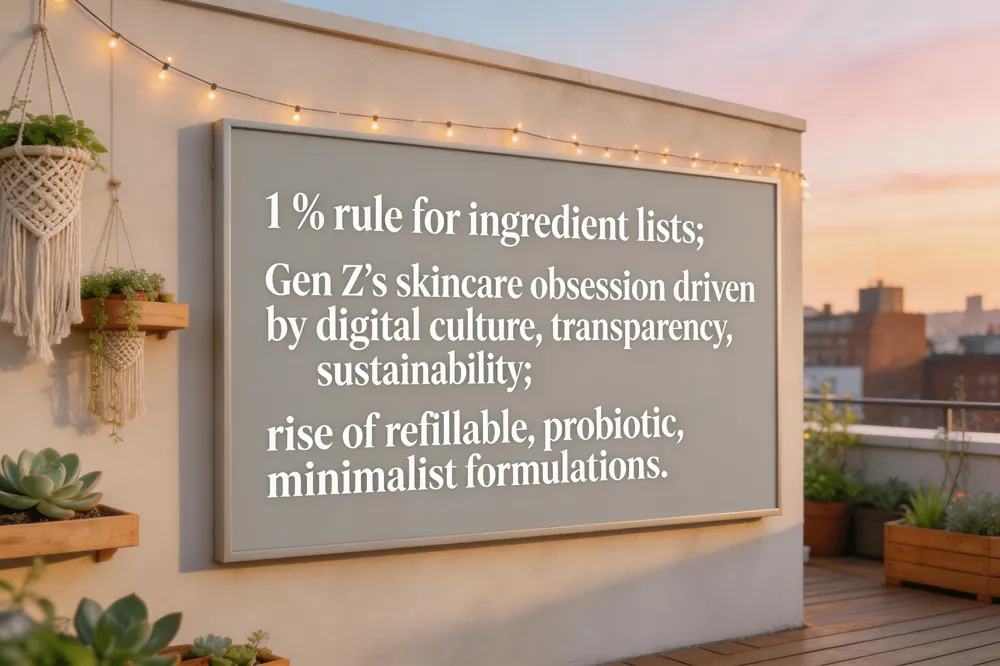 The 1 % rule for ingredient lists means manufacturers order components by concentration only until an ingredient reaches 1 % of the formula; below that threshold the order is free, so actives, preservatives or fragrances can sit near the bottom yet still be effective. Gen Z’s skincare obsession stems from digital‑native culture: flawless skin is a branding tool on Instagram and TikTok, and the ritual offers stress relief, self‑care and community validation. Transparency in labeling—clear disclosure of sources, clean‑ingredient claims and sustainability metrics—feeds this demand for authenticity. Consumer‑driven product innovation follows, with brands launching refillable packaging, probiotic‑based serums and minimalist formulas that prioritize efficacy over hype. Why is Gen Z obsessed with skincare? They view routines as personal expression, mental‑well‑being practice and ethical statement, gravitating toward products that align with their values. What is the 1 % rule? It governs how ingredients are listed, allowing low‑percentage actives to remain hidden but still impactful.