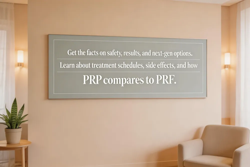 PRP and PRF are closely related autologous treatments, but key differences in preparation affect their use. PRP is prepared using anticoagulants and high-speed centrifugation, resulting in a liquid concentrate of platelets and growth factors that release their effects relatively quickly. PRF (Platelet-Rich Fibrin) is a newer evolution. It is processed without anticoagulants at a slower spin speed, which creates a natural fibrin gel matrix. This scaffold traps platelets and white blood cells, allowing for a slower, more sustained release of growth factors over 7 to 10 days. PRF is often considered for applications where longer-term tissue support and regeneration are desired, such as in deeper rejuvenation or certain surgical healing protocols.