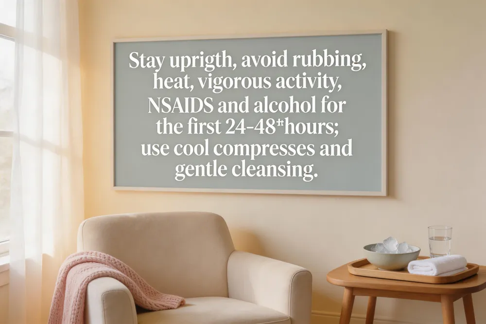 After a Botox session, the first few hours are critical for locking the toxin in place. Immediate post‑procedure precautions: stay upright for 3‑4 hours, avoid lying flat, and keep the treated area free of pressure. Do not massage, rub, or press on the injection sites for at least 12 hours. Skip vigorous exercise, saunas, hot tubs, and intense facial workouts for the first 24 hours. Refrain from NSAIDs, aspirin, ibuprofen, and alcohol on the day of treatment to minimize bruising. A cool compress can calm mild swelling, and gentle face washing with a mild cleanser is safe.