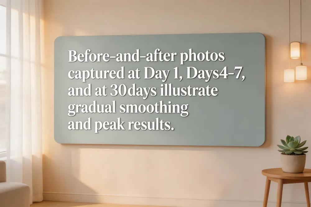 Patients typically notice the first subtle softening of lines around days 4‑5, a clearer reduction by days 6‑7, and the full, lasting improvement by about 30 days. Clinics such as Jana HealthCare capture this progression with a before‑and‑after photo at the initial consultation and a final image at the one‑month mark, often showing a ≥ 2‑grade improvement in frown lines, crow’s feet, or forehead wrinkles. Early photos may reveal only mild redness or swelling, while the day‑30 picture displays smoother skin, diminished dynamic lines, and a refreshed appearance. These visual records set realistic expectations and reassure patients that results are natural‑looking.