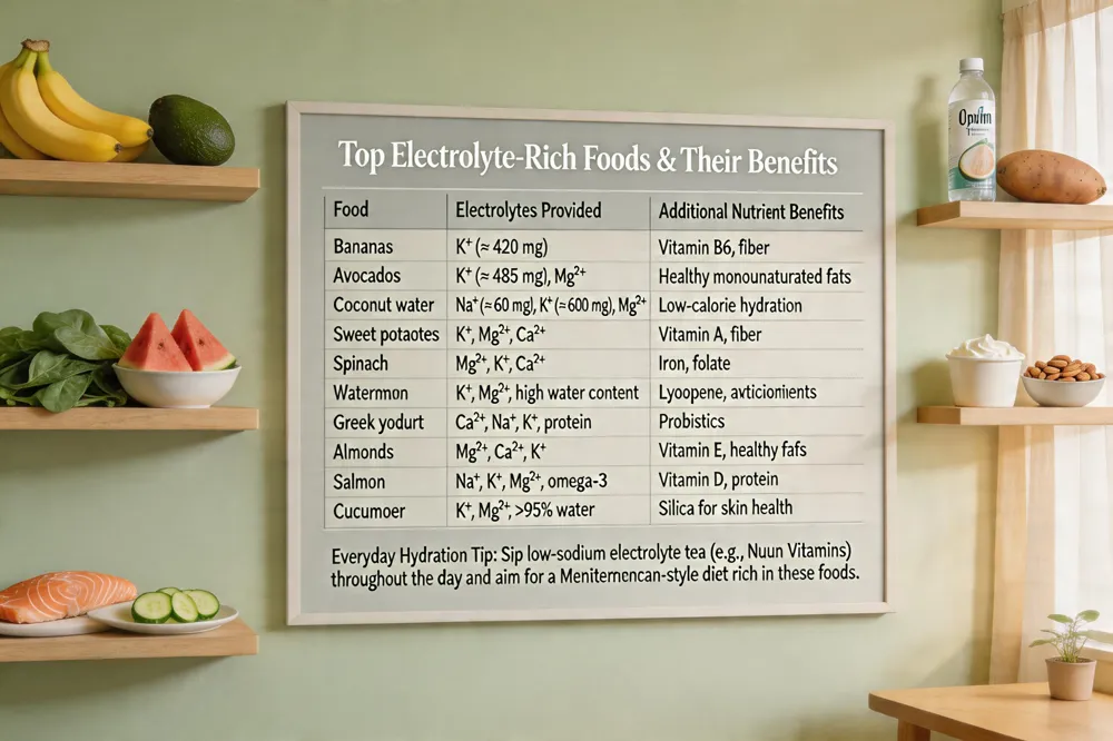 Everyday Hydration Tip: Sip low‑sodium electrolyte tea (e.g., Nuun Vitamins) throughout the day and aim for a Mediterranean‑style diet rich in these foods.