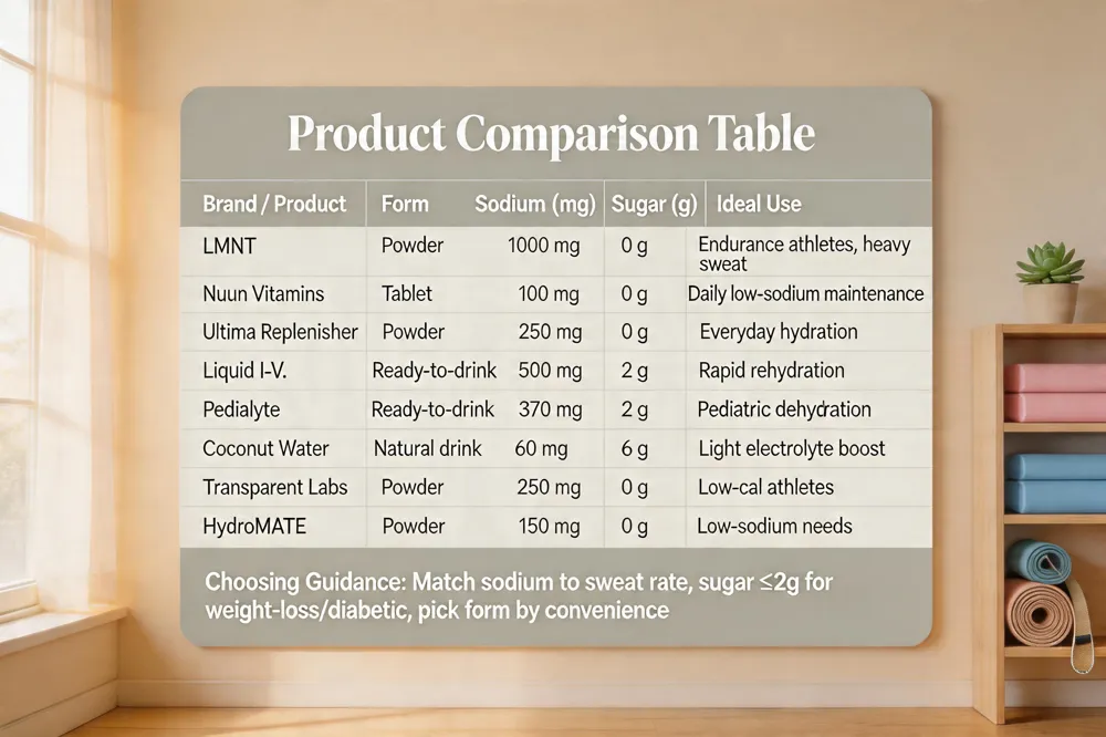 Choosing Guidance: Match sodium level to sweat rate, keep sugar ≤ 2 g per serving for weight‑loss or diabetic plans, and pick powder vs. ready‑to‑drink based on convenience.